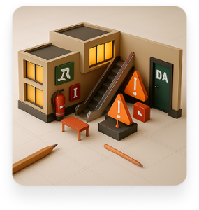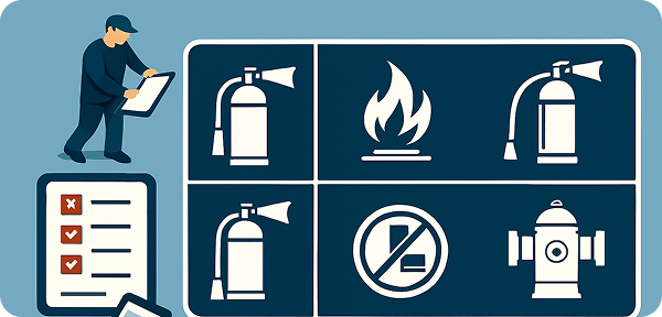 Develop fire evacuation plans, label extinguishers, alarms, and exits for safety and compliance.